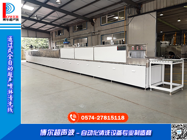 工藝流程:自動(dòng)上料――高壓噴淋脫脂粗洗――高壓噴淋脫脂精洗--高速風(fēng)切隔斷--噴淋漂洗--噴淋熱漂洗――噴淋防銹――多段式風(fēng)切――隧道式烘干――自動(dòng)下料