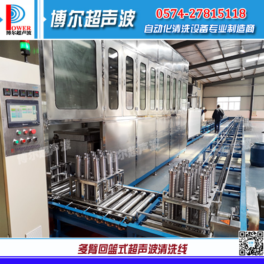 五金零件全自動超聲波清洗機 > 多臂式回籃清洗線